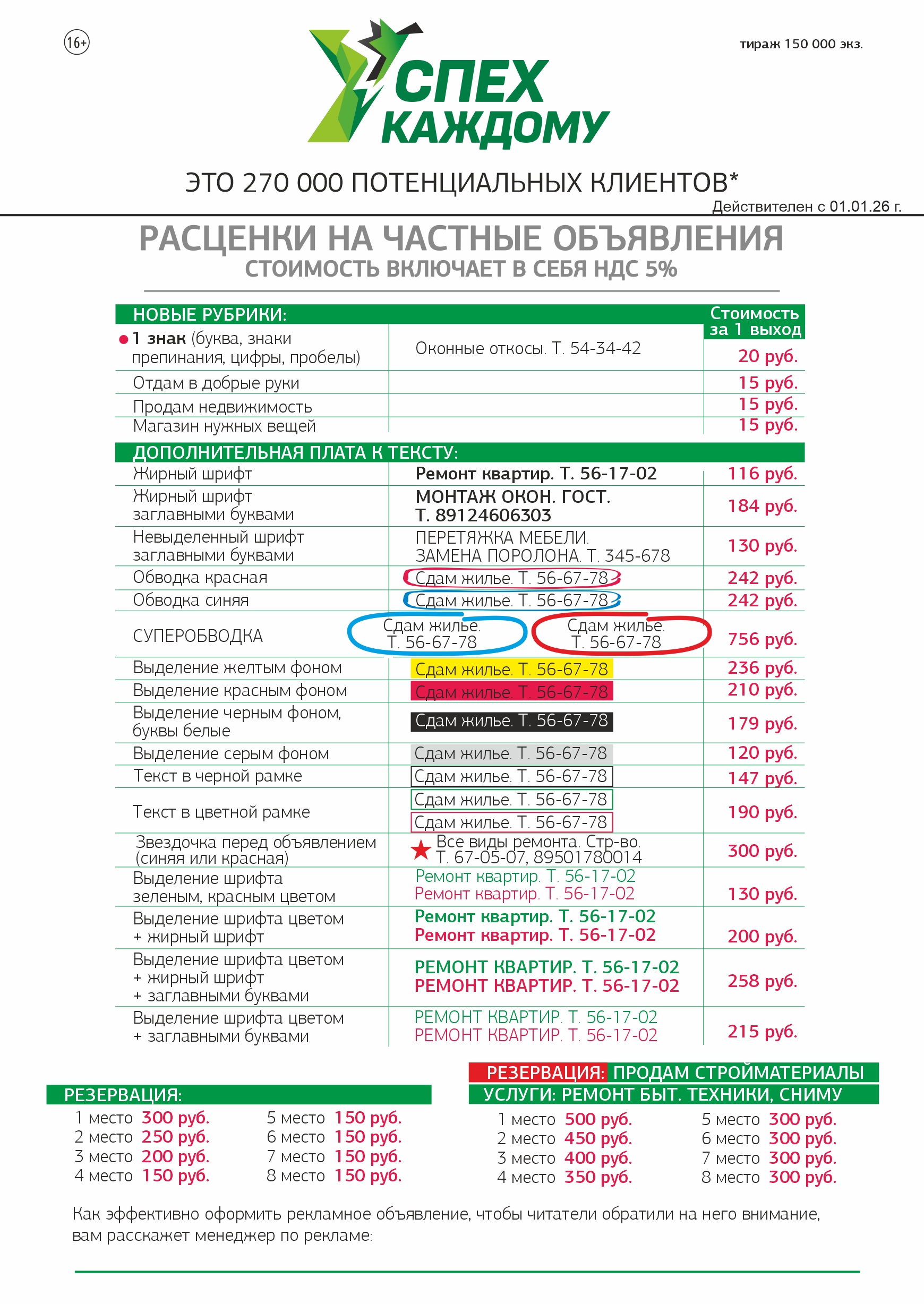 2.1.7. Рекламодатель обязуется соблюдать требования к оригинал-макетам рекламных объявлений, прописанные в прайс-листе Агентства, на сайте Агентства https://uspeh.udm.ru/price-01-01-2026-chasniki.jpg, а так же на сайте Типографии https://fenixnews.ru/.